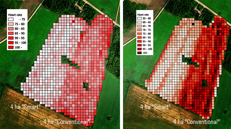 - La frequenza cardiaca media è scesa a 68 bpm con lo smart farming, contro 77 bpm senza.